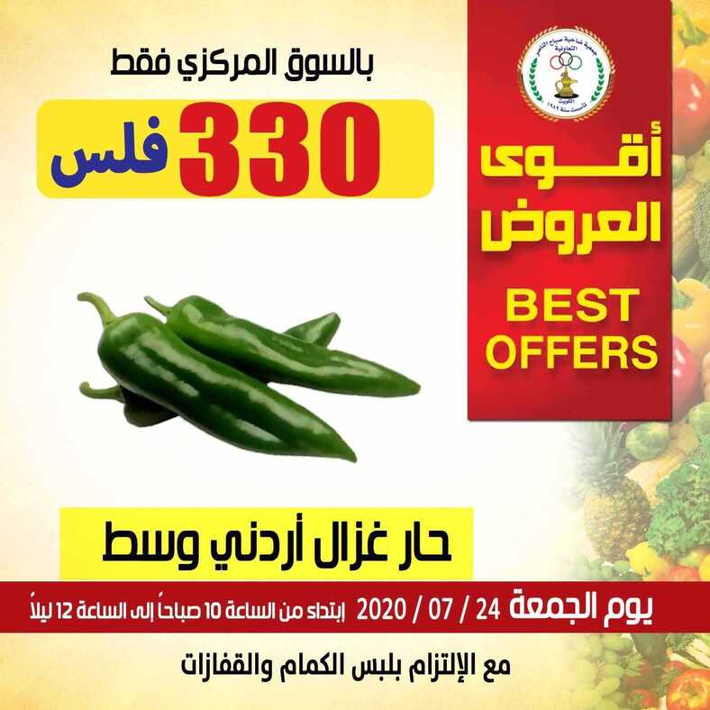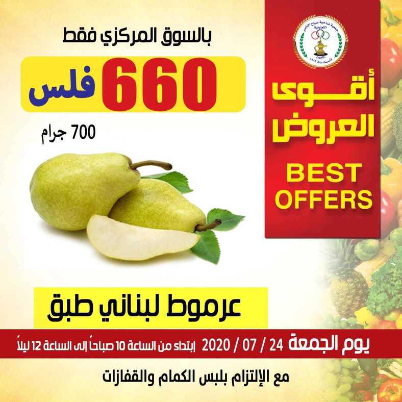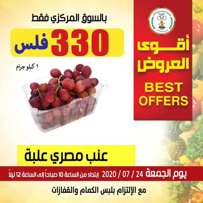 عروض جمعية صباح الناصر التعاونية الكويت 24/7/2020 الموافق 3 ذو الحجة 1441 قوى العروض مهرجان الخضار والفواكه ليوم الجمعة تشكيلة من الخضروات والفواكه الطازجة