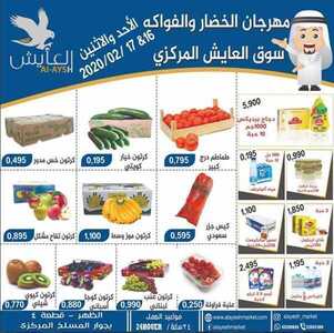 عروض سوق العايش المركزي الكويت 16/2/2020 الموافق 22 جمادى الثاني 1441 عروض يومي الأحد والاثنين عروض الخضار والفواكه بأسعار تنافسية