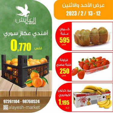 عروض سوق العايش المركزي اليوم 12 فبراير 2023 الموافق 21 رجب 1444 عرض الخضار والفواكه