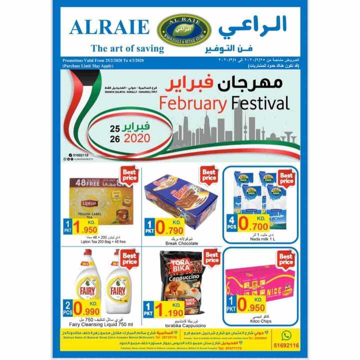 عروض الراعي الكويت حولي والسالمية والفحيحيل 26/2/2020 الموافق 2 رجب 1441 عروض جديدة مهرجان هلا فبراير تشكيلة من السلع وبأسعار منافسة