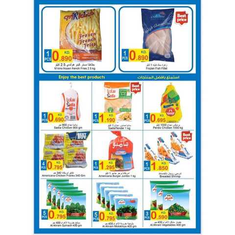 مسحوق اريال ، كمفورت ، كلوركس ، كويك معطر ومطهر ، كمفورت مركز ، معجون اسنان سيجنال ، فلاش سائل للتنظيف ، كلوس اب معجون اسنان ، لوكس سائل غسيل الصحون ، محارم فاين ، طماطم ، بطاطس ، خس ، ملفوف ، خيار ، موز ، سمك بلطي ، فخذ خروف مصري ، لحم عجل كويتي صافي ، لحم مصري