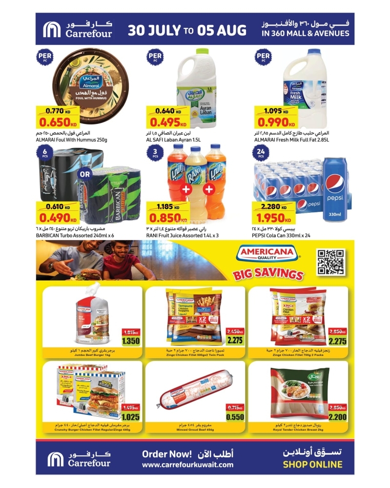 عروض كارفور الكويت الأسبوعية 29 يوليو 2025 الموافق 4 صفر 1447 عروض الصيف . تابعوا أحدث عروض السعودية المتوفرة في جميع المتاجر و الهايبرات بأسعار منافسة 28-7-2025 الموافق 3-2-1447 عروض كارفور الكويت المذهلة : تتضمن تخفيضات مجلة هذا الأسبوع حسم مميز وخاص على المنتجات المتوفرة في متاجرنا فتجدون هنالك تخفيض على زيت للشعر اعشاب الهند ٢٨٠ مل . و ايضا كذلك منتجات للشعر باراشوت . لا ننسى ايضا كذلك صبغة للشعر نسائي بدون امونيا بيجين بالحبة . و يوجد هنا كذلك كريم ملتي فيتامين جلو اند لفلي ٨٠ غرام . كما و لدينا ايضا كذلك غسول الوجه هيمالايا ١٥٠ مل او جل الصبار لتنظيف الوجه ١٦٥ مل . و لا تنسوا ايضا كذلك سيروم اشراقة سريعة فيتامين سي غارنييه ١,٥ مل . تجدون كذلك صبغة للشعر بروديجي بالحبة . عروض كارفور الكويت أسبوعية مميزة : و مما تقدمه لكم أيضاً عروض اليوم من عروض توفيرية كلوريل ١ لتر أبيض و لتر ٢ حبة ١ لتر . و ايضا كذلك فايتر فلاش متعدد مزيل البقع ٧٠٠ مل عبوة . لا ننسى ايضا كذلك فيتا ريتش لوشن ٢٥٠ مل . و يوجد هنا كذلك فيرو بديل زيت مستورد ٢٥٠ مل انواع . كما و لدينا ايضا كذلك رايت منديل ٥٥٠ منديل . و لا تنسوا ايضا كذلك كيرفرى ٥٦ او ٤٨ فوطة عبوة . تجدون كذلك نورمال كلينيك قطن مكياج مدور ١٥٠ قطعة . وإليكم الصور على موقع الكويت.