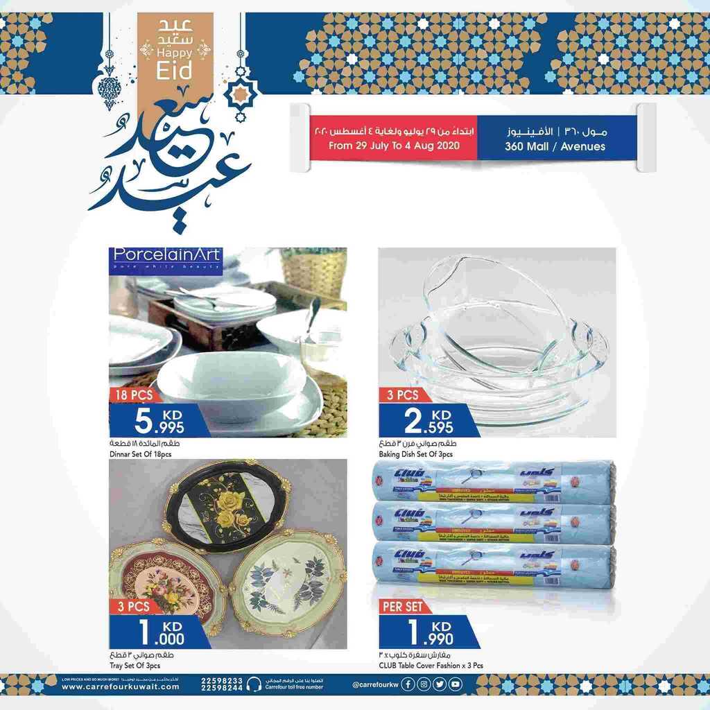عروض كارفور الكويت مول 360 والأفينيوز من 29/7/2020 الموافق 8 ذو الحجة 1441 عروض جديدة مول 360 والأفينيوز ابتداء من 29 يوليو حتى 4 أغسطس 2020 تشكيلة منوعة من الادوات المنزلية ومستلزمات المطبخ والالبسة