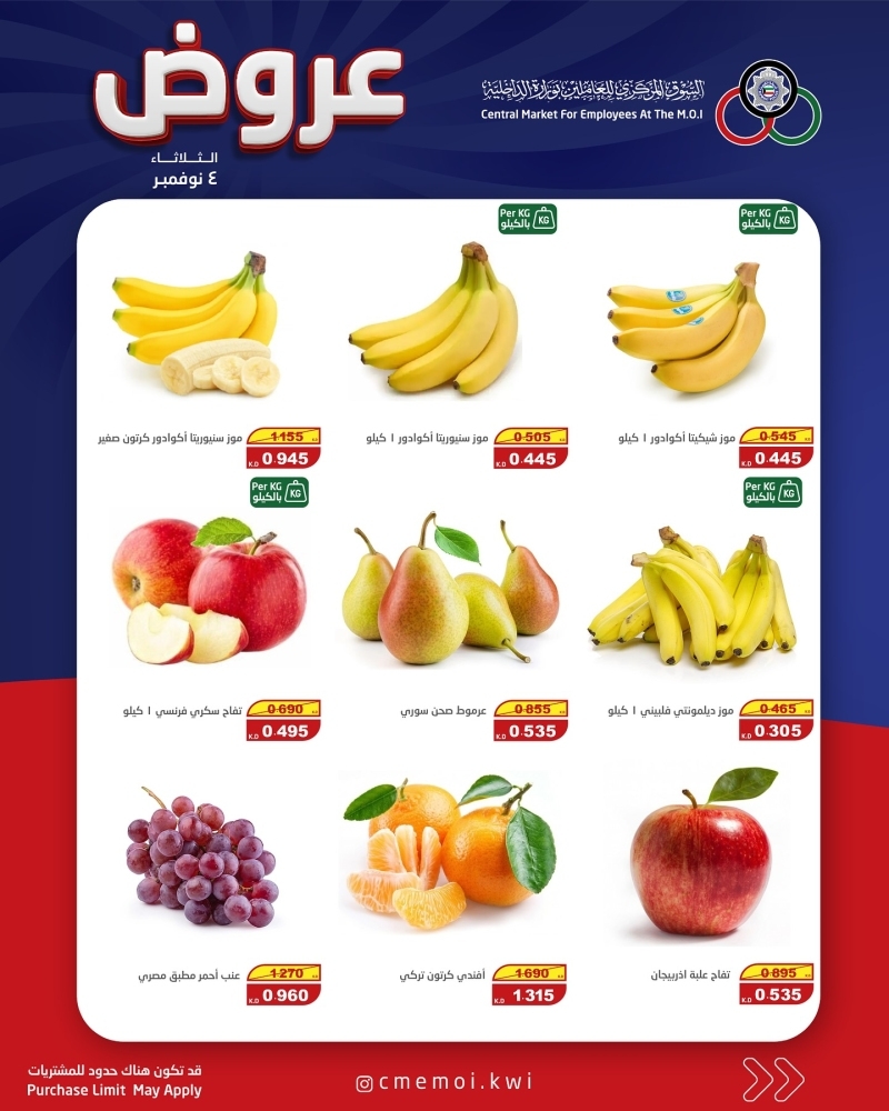 عروض السوق المركزي للعاملين بوزارة الداخلية اليوم 5 أغسطس 2025 الموافق 11 صفر 1447 تنزيلات الخضار و الفواكه