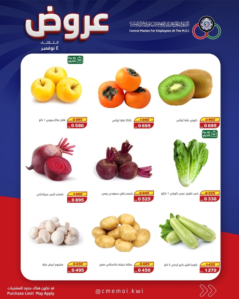 عروض السوق المركزي لوزارة الداخلية اليوم 26 ديسمبر 2023 الموافق 13 جمادى الاخر 1445 عروض الخضار و الفواكه