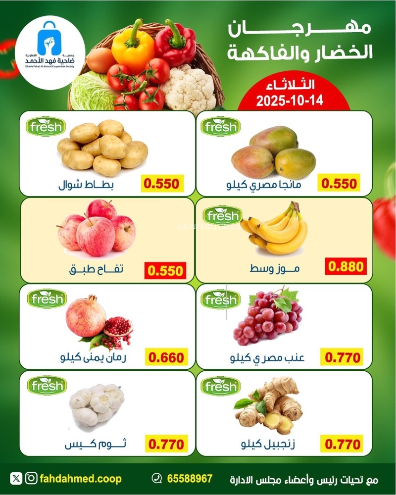 عروض جمعية فهد الاحمد التعاونية اليوم 13 أغسطس 2024 الموافق 9 صفر 1446 عروض الخضار و الفواكه بصفحة واحدة