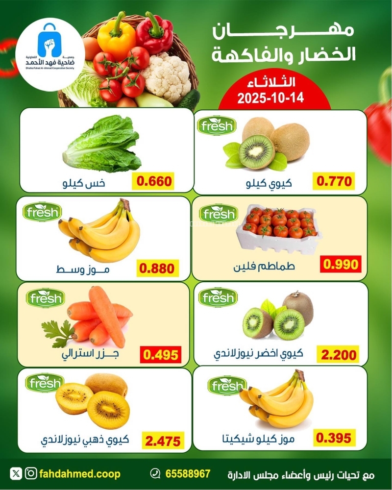 عروض جمعية فهد الاحمد التعاونية اليوم 14 أكتوبر 2025 الموافق 21 ربيع الاخر 1447 عروض الخضار و الفواكه . تابعوا أحدث عروض السعودية المتوفرة في جميع المتاجر و الهايبرات بأسعار منافسة 14-10-2025 الموافق 21-4-1447 عروض جمعية فهد الاحمد التعاونية اليوم : تتضمن تخفيضات جمعية فهد الاحمد التعاونية مياه قليلة الصوديوم اكوا جلف ٢٠٠ مل ١٢ حبة . و ايضا كذلك مياه فيستا جوفيه قليلة الصوديوم ٢٠٠ مل . لا ننسى ايضا كذلك اوشنز برايد زينجز روبيان حار بالبقسماط ٧٥٠ غرام ١٢ حبة . و يوجد هنا كذلك اوشنز برايد ستيك سالمون بدون جلد ٢٠٠ غرام ٣ قطعة ٨ حبة . كما و لدينا ايضا كذلك عسل المميز مشبع ٥٠٠ غرام ٢ حبة . ترقبوا كذلك المزيد من العروض و المفاجات في كل أسبوع . عروض جمعية فهد الاحمد التعاونية لهذا الأسبوع: و مما تقدمه لكم أيضاً عروض اليوم من عروض نتشه كافيه كيس شاي كرك بالهيل ٣٠ ظرف ٢٠ غرام . و ايضا كذلك ديتول مطهر ١٢٥ مل ١ حبة . لا ننسى ايضا كذلك ديتول مطهر ٢٥٠ مل ١ حبة . و يوجد هنا كذلك فانيش بودرة ملابس ابيض ٩٠٠ غرام ١ حبة . كما و لدينا ايضا كذلك هاربيك منظف الحمام ٧٥٠ مل ١ حبة بانواعه . و لا تنسوا ايضا كذلك فانيش سائل ملابس وردي ١٨٠٠ مل ١ حبة . واليكم الصور الآتية على موقع عروض الكويت
