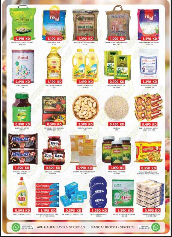 بصل ، فلفل بارد اخضر ، كيوي ، خس ابيض ، بطاطا ، تفاح ، عنب احمر ، لبن المراعي ، دجاج ساديا