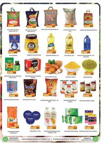 تفاح رويال جالا ، جوافه مصري ، فراولة مصري ، مشمش ، مندرينا ، بصل احمر ، بطاطا ، طماطم ، خس مدور ، ملفوف ، فلفل اخضر ، بطاطا حلوة ، شمندر ، جزر ، بامية ، دجاج ساديا ، حليب المراعي ، حليب نادك
