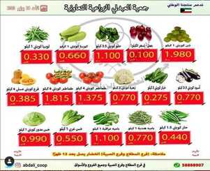 عروض جمعية العبدلي التعاونية الكويت 28/6/2020 الموافق 8 ذو القعدة 1441 عروض الخضار والفواكه ليوم الاحد مجموعة من الخضروات الطازجة