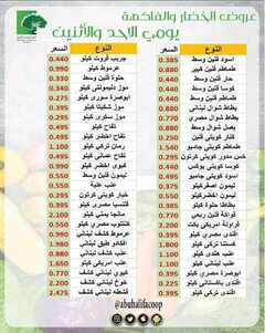 عروض جمعية أبو حليفة التعاونية الكويت الأحد والإثنين 7حتى8 مارس 2021 الموافق 24 رجب 1442 عروض الخضار والفاكهة ليومين الجديدة مجموعة خضروات طازجة وفواكه منوعة لاتفوتكم متابعتها