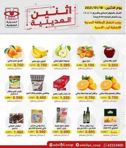 عروض جمعية العديلية التعاونية الكويت الاثنين 18/1/2021 الموافق 5 جمادى الثاني 1442 عروض اسبوعية جديدة ليوم الاثنين في السوق المركزي تشكيلة من الخضار والفاكهة والمواد الغذائية المنوعة
