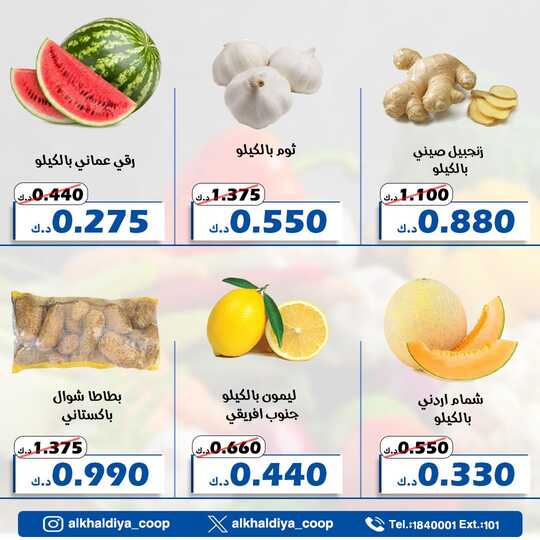 عروض جمعية الخالدية التعاونية اليوم 2 يوليو 2024 الموافق 26 ذو الحجة 1445 عروض الخضار و الفواكه بصفحة واحدة . تابعوا أحدث عروض اليوم 2-7-2024 الموافق 26-12-1445