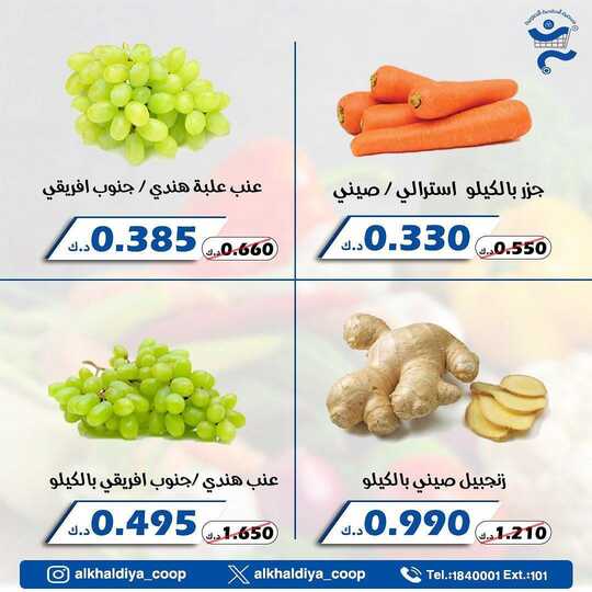 عروض جمعية الخالدية التعاونية اليوم 26 مارس 2024 الموافق 16 رمضان 1445 عروض الخضار و الفواكه بصفحة واحدة . تابعوا أحدث عروض اليوم 26-3-2024 الموافق 16-9-1445