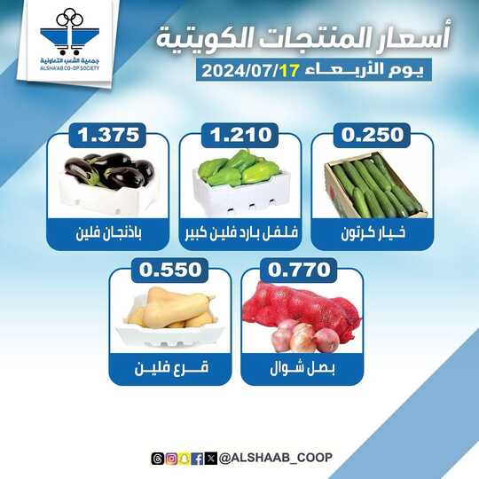 عروض جمعية الشعب التعاونية اليوم 17 يوليو 2024 الموافق 11 محرم 1446 عروض الخضار و الفواكه بصفحة واحدة . تابعوا أحدث عروض اليوم 17-7-2024 الموافق 11-1-1446