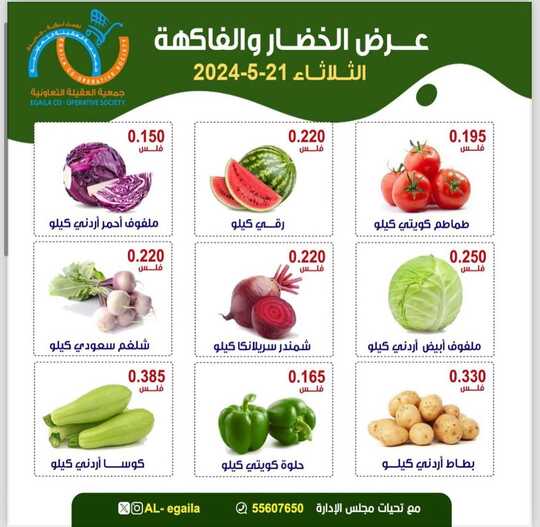 عروض جمعية العقيلة التعاونية اليوم 21 مايو 2024 الموافق 14 ذو القعدة 1445 مهرجان الخضار والفاكهة بصفحة واحدة