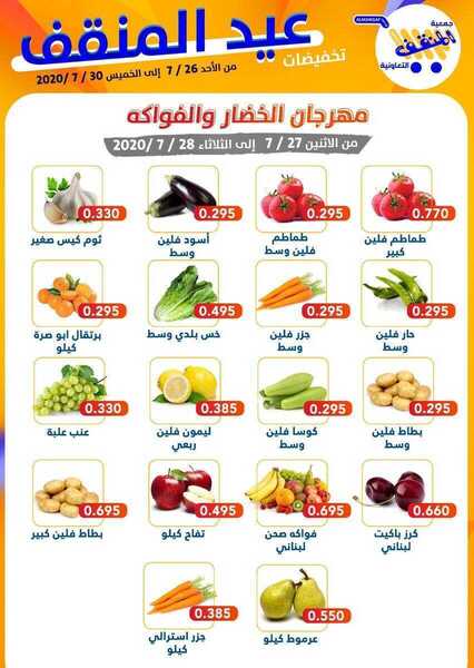 عروض جمعية المنقف التعاونية الكويت من 27/7/2020 الموافق 6 ذو الحجة 1441 عروض جديدة ابتداء من 27 يوليو حتى 28 يوليو 2020 مهرجان الخضار والفواكه