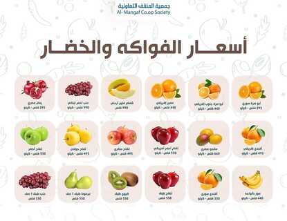 عروض جمعية المنقف التعاونية اليوم 2 نوفمبر 2024 الموافق 30 ربيع الاخر 1446 عروض الخضار و الفواكه بصفحة واحدة . تابعوا أحدث عروض السعودية المتوفرة في جميع المتاجر و الهايبرات بأسعار منافسة 2-11-2024 الموافق 30-4-1446