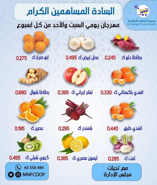 عروض جمعية المنقف التعاونية اليوم 23 مارس 2024 الموافق 13 رمضان 1445 عروض الخضار و الفواكه بصفحة واحدة . تابعوا أحدث عروض اليوم 23-3-2024 الموافق 13-9-1445