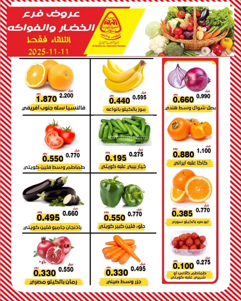 عروض جمعية النزهة التعاونية اليوم 11 نوفمبر 2025 الموافق 20 جمادى الاول 1447 عروض الخضار و الفواكه