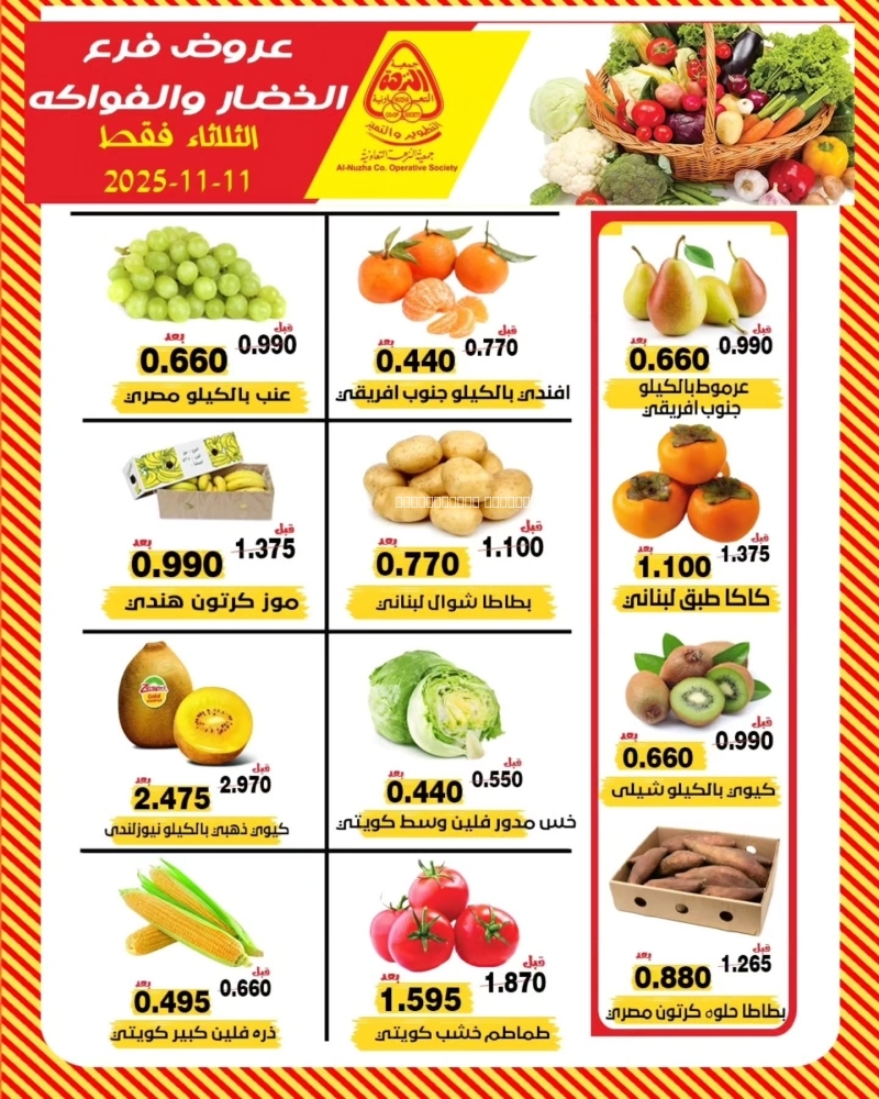 عروض جمعية النزهة التعاونية اليوم 11 نوفمبر 2025 الموافق 20 جمادى الاول 1447 عروض الخضار و الفواكه