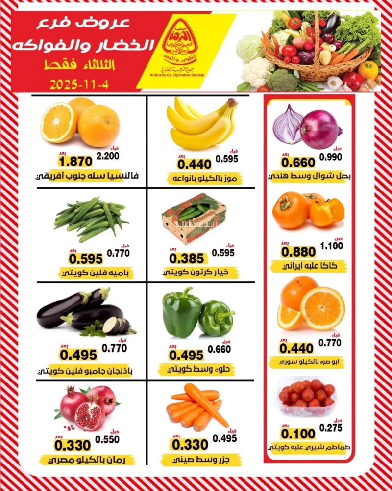عروض جمعية النزهة التعاونية اليوم 4 نوفمبر 2025 الموافق 13 جمادى الاول 1447 عروض الخضار و الفواكه