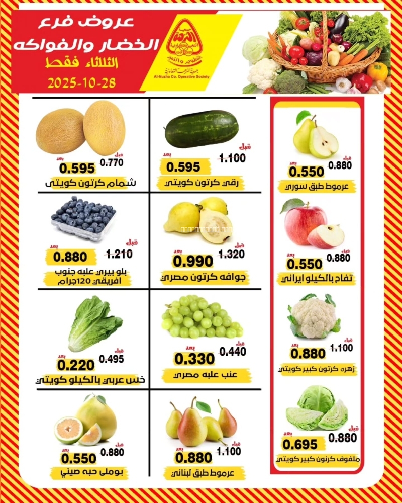 عروض جمعية النزهة التعاونية اليوم 11 مارس 2023 الموافق 19 شعبان 1444 عرض الخضار و الفواكه