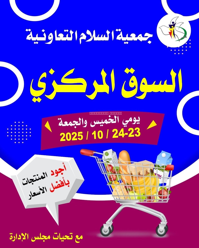 عروض جمعية السلام التعاونية اليوم 23 أكتوبر 2025 الموافق 1 جمادى الاول 1447 عروض السوق المركزي