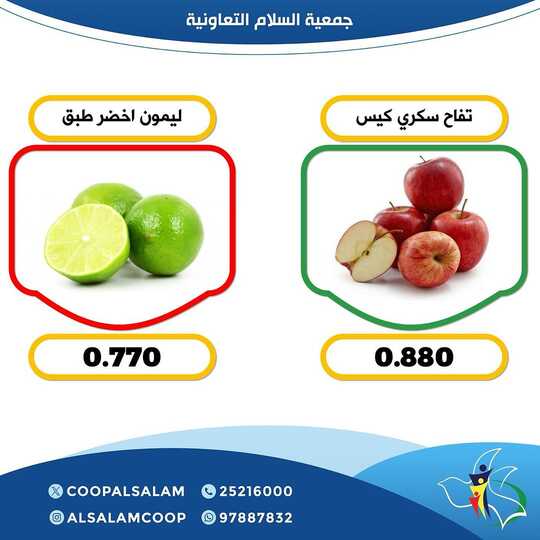 عروض جمعية السلام التعاونية اليوم 25 أبريل 2024 الموافق 16 شوال 1445 عروض الخضار والفاكهة بصفحة واحدة. تابعوا أحدث عروض اليوم 25-4-2024 الموافق 16-10-1445