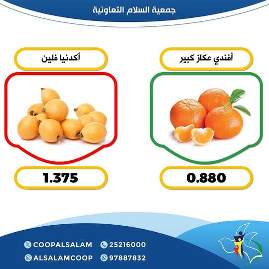عروض جمعية السلام التعاونية اليوم 25 أبريل 2024 الموافق 16 شوال 1445 عروض الخضار والفاكهة بصفحة واحدة