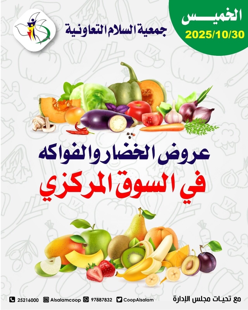 عروض جمعية السلام التعاونية اليوم 30 أكتوبر 2025 الموافق 8 جمادى الاول 1447 عروض السوق المركزي