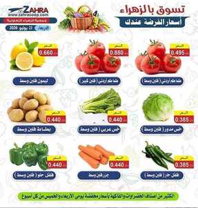 عروض جمعية الزهراء التعاونية الكويت الاربعاء 22/7/2020 الموافق 1 ذي الحجة 1441 خضروات وفوكه طازجة وأسعار يوم بيوم لاتفوتكم متابعتها