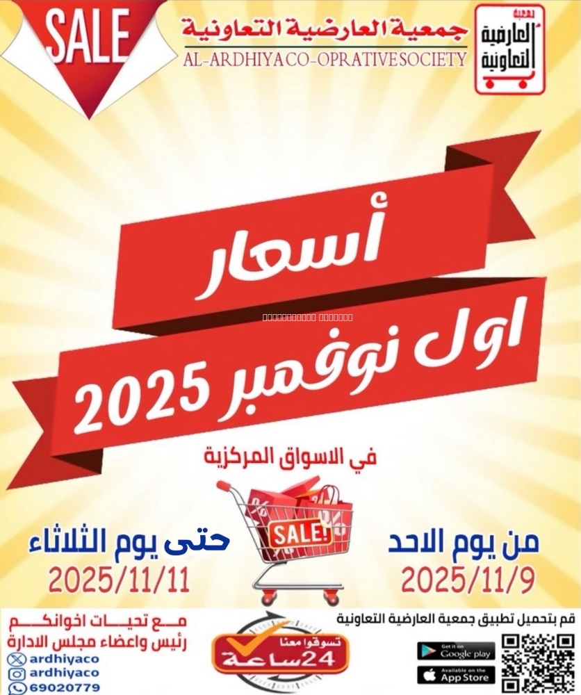 عروض جمعية العارضية التعاونية اليوم 10 نوفمبر 2025 الموافق 19 جمادى الاول 1447 عروض أسعار اول نوفمبر