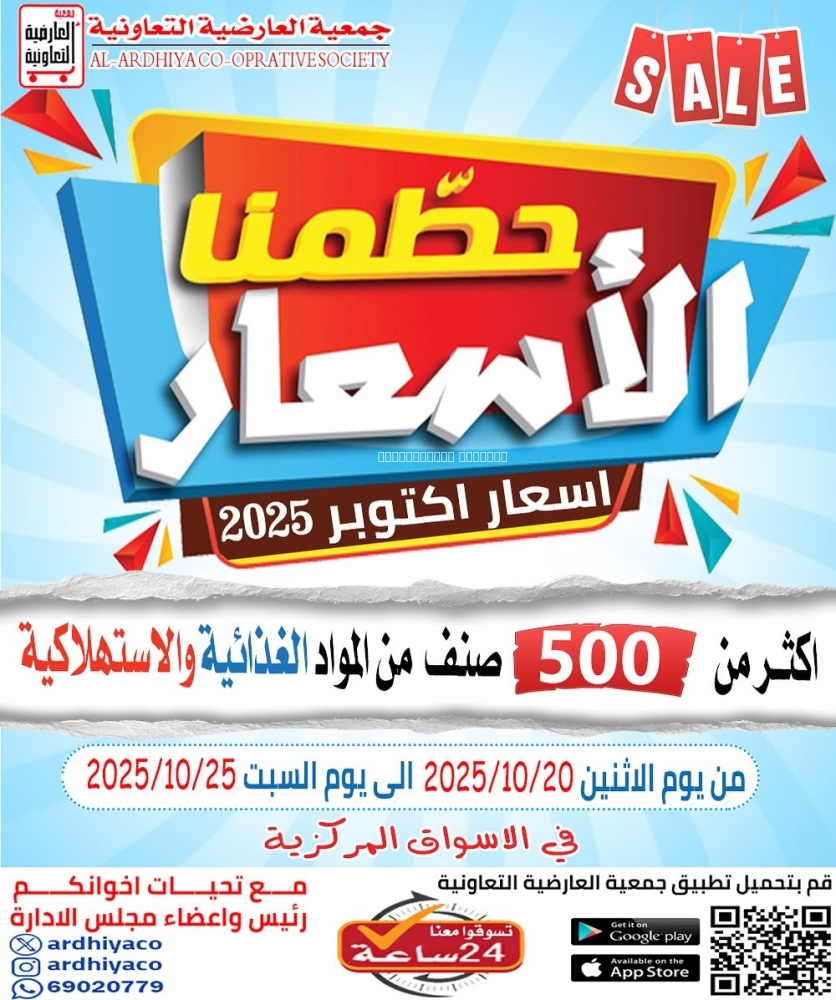 عروض جمعية العارضية التعاونية اليوم 20 أكتوبر 2025 الموافق 28 ربيع الاخر 1447 عروض حطمنا الأسعار
