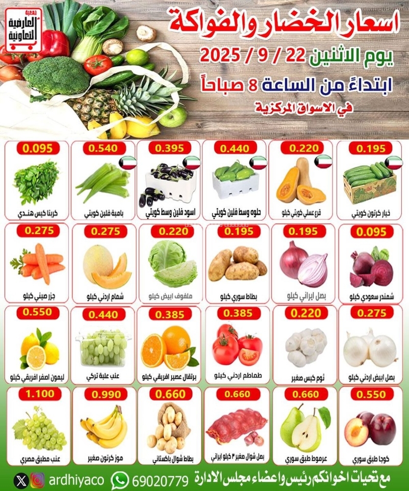 عروض جمعية العارضية التعاونية اليوم 22 سبتمبر 2025 الموافق 30 ربيع الأول 1447 عروض الخضار و الفواكه