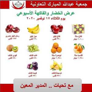 عروض جمعية عبد الله المبارك التعاونية الكويت الثلاثاء 17/11/2020 الموافق 2 ربيع الثاني 1442 تخفيضات وعروض منوعة وحصرية عروض الخضار والفاكهة الاسبوعي 17 نوفمبر 2020