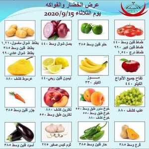 عروض جمعية عبد الله المبارك التعاونية الكويت الثلاثاء 15/9/2020 الموافق 27 محرم 1442 عرض الخضار والفواكه يوم الثلاثاء 15 سبتمبر 2020 تشكيلة من الخضروات والفاكهة الطازجة