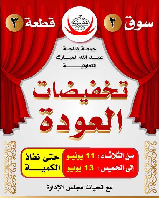عروض جمعية عبد الله المبارك التعاونية اليوم 11 يونيو 2024 الموافق 5 ذو الحجة 1445 تخفيضات العودة بصفحة واحدة