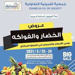 عروض جمعية إشبيلية التعاونية الكويت من 24 مارس 2021 خضار وفاكهة الموافق 11 شعبان 1442 عروض الخضار والفواكه يومي الأربعاء والخميس في السوق المركزي