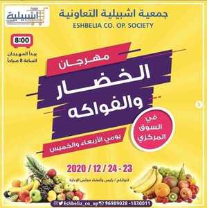 عروض جمعية إشبيلية التعاونية الكويت من 23/12/2020 الموافق 8 جمادى الأولى 1442 مهرجان الخضار والفواكه ليومين الاربعاء والخميس 23-24 ديسمبر 2020 تجدون فيها افضل انواع الخضار والفاكهة الطازجة