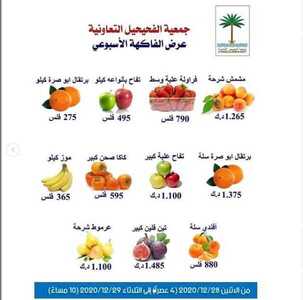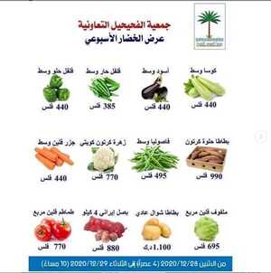 عروض جمعية الفحيحيل التعاونية الكويت من 28/12/2020 الموافق 13 جمادى الأولى 1442 عرض الخضار الأسبوعي عروض دائمة ومتجددة كل اسبوع تشكيلة من الخضار والفاكهة الطازجة
