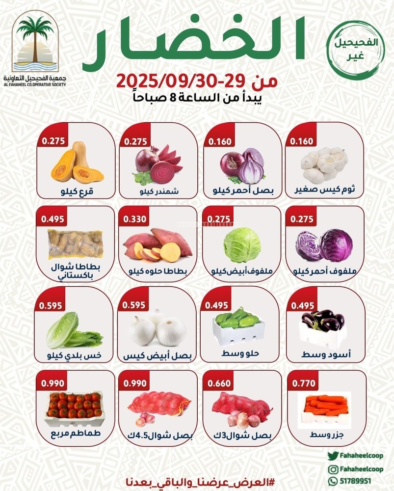 عروض جمعية الفحيحيل التعاونية اليوم 29 سبتمبر 2025 الموافق 6 ربيع الاخر 1447 عروض الخضار و الفواكه