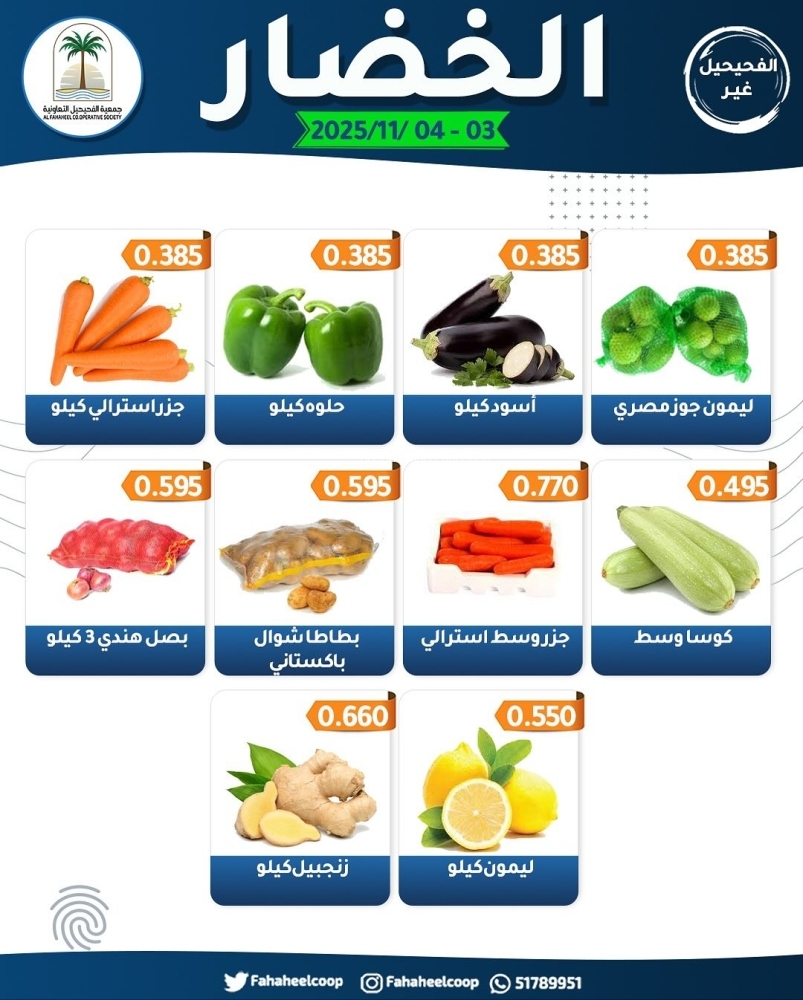عروض جمعية الفحيحيل التعاونية اليوم 3 نوفمبر 2025 الموافق 12 جمادى الاول 1447 عروض الخضار و الفواكه . تابعوا أحدث عروض السعودية المتوفرة في جميع المتاجر و الهايبرات بأسعار منافسة 3-11-2025 الموافق 12-5-1447 عروض جمعية الفحيحيل التعاونية اليوم : تتضمن تخفيضات جمعية الفحيحيل التعاونية بطاطا مقرمشة م كرسب ٣ حبة × ١٦٠ جرام . و ايضا كذلك ووكرز كوكيز مخبوزة منوعة ١٥٠ جرام . لا ننسى ايضا كذلك سبارك شوكولاتة مكس ٥٠٠ غرام . و يوجد هنا كذلك جوز أمريكي مقشر ٥٠٠ غرام . كما و لدينا ايضا كذلك علث كافيه تحميص إيطالي ٣٠ × ١٦ جرام . و لا تنسسوا ايضا كذلك جود داي كابتشينو ٣ في ١ ٢٠ ظرف ٢٥ جرام . ترقبوا كذلك المزيد من العروض و المفاجات في كل أسبوع . عروض جمعية الفحيحيل التعاونية لهذا الأسبوع: و مما تقدمه لكم أيضاً عروض اليوم من عروض باردلي مزيل عرق متنوع ٣ حبة ٥٠ مل . و ايضا كذلك باردلي بودرة تالك ٢٥٠ جرام . لا ننسى ايضا كذلك جونسون شامبو أطفال ٢ حبة ٥٠٠ مل . و يوجد هنا كذلك فيري صابون سائل بالليمون ١,٥ لتر . كما و لدينا ايضا كذلك لايفيوي صابون عناية ناعمة ٤ × ١٢٥ جرام . و لا تنسوا ايضا كذلك بابلز صابون سائل ٥٠٠ مل ممنوع . تجدون كذلك علا ورق قصدير تقيل ٣ × ٣٧ جرام . واليكم الصور الآتية على موقع عروض الكويت