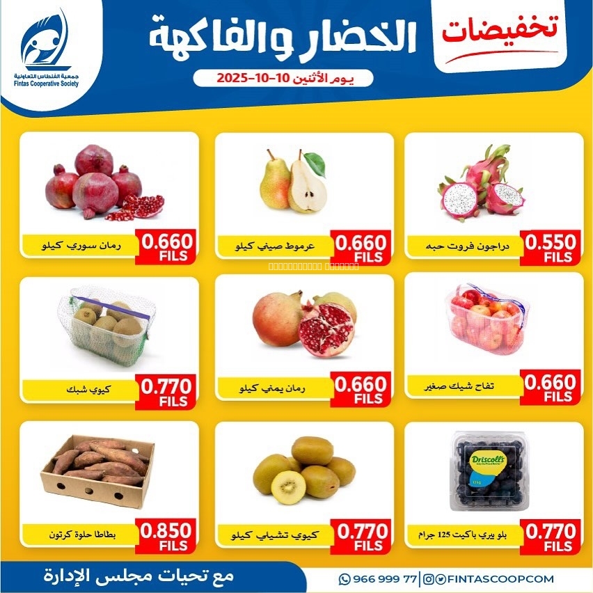 عروض جمعية الفنطاس التعاونية اليوم 10 مارس 2025 الموافق 10 رمضان 1446 عروض الخضار و الفواكه بصفحة واحدة