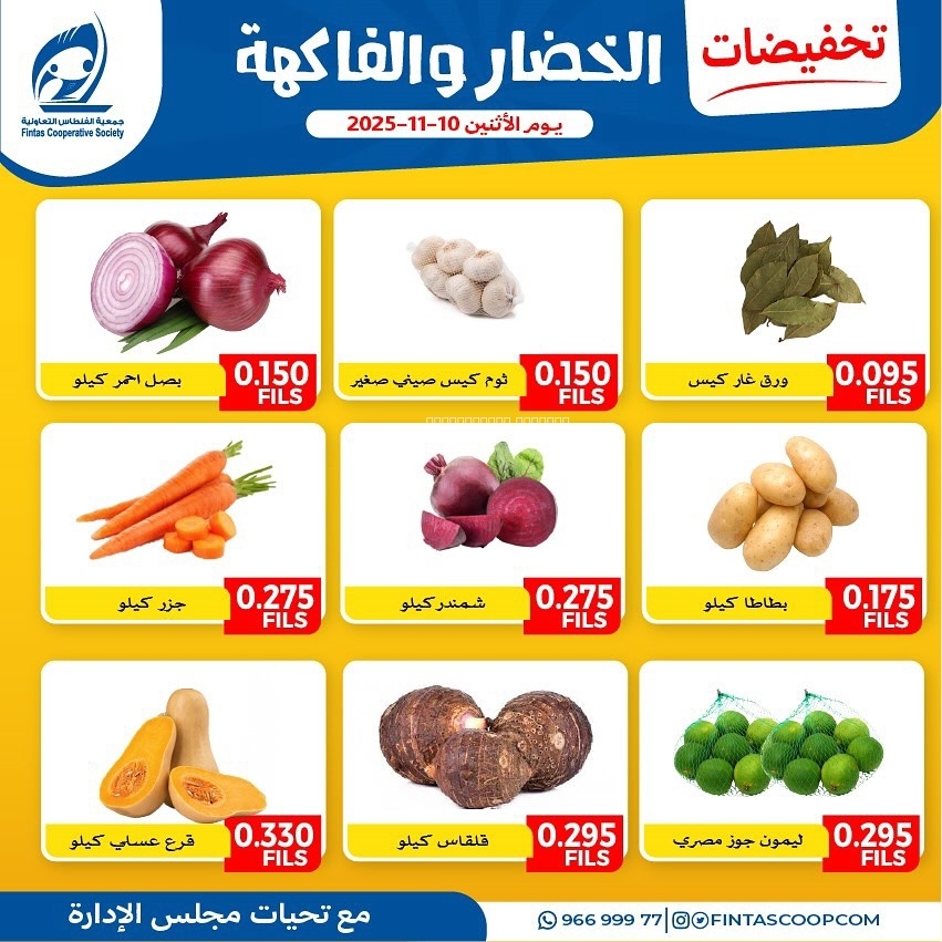 عروض جمعية الفنطاس التعاونية اليوم 10 نوفمبر 2025 الموافق 19 جمادى الاول 1447 عروض الخضار و الفواكه