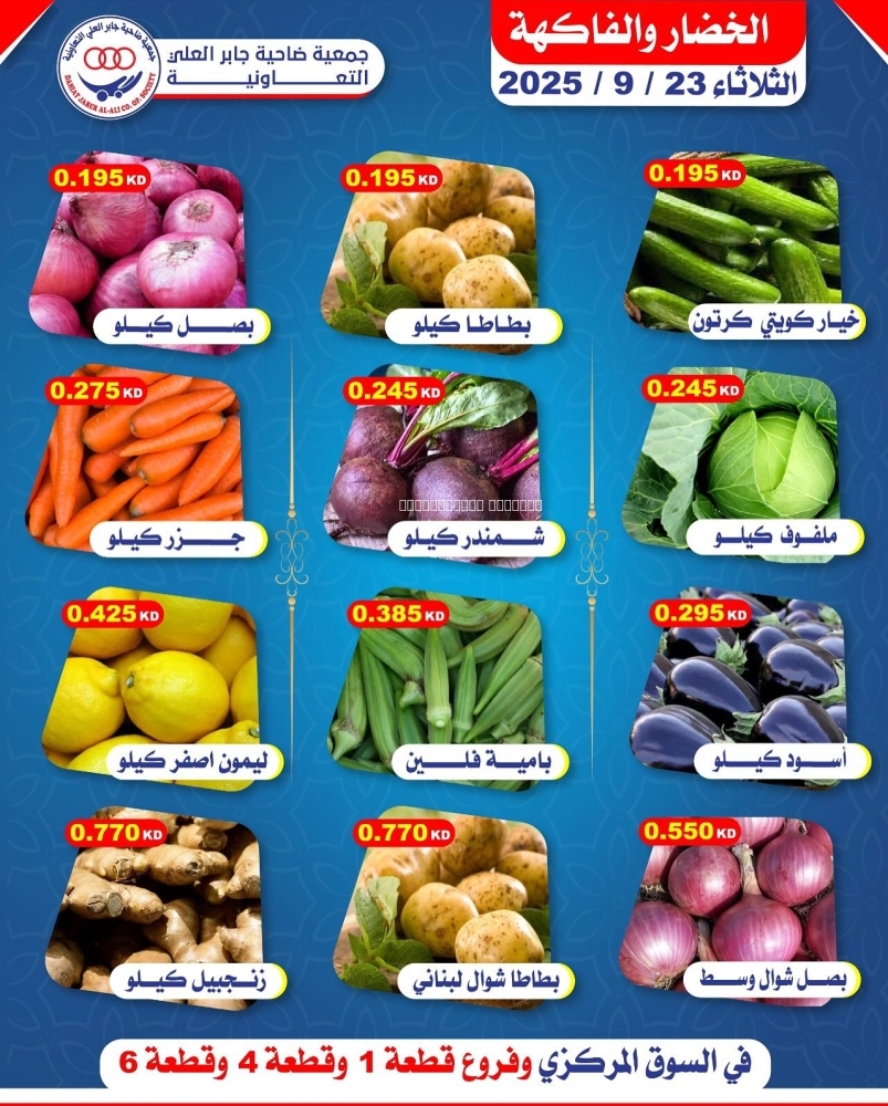 عروض جمعية جابر العلي التعاونية اليوم 23 سبتمبر 2025 الموافق 1 ربيع الاخر 1447 عروض الخضار و الفواكه
