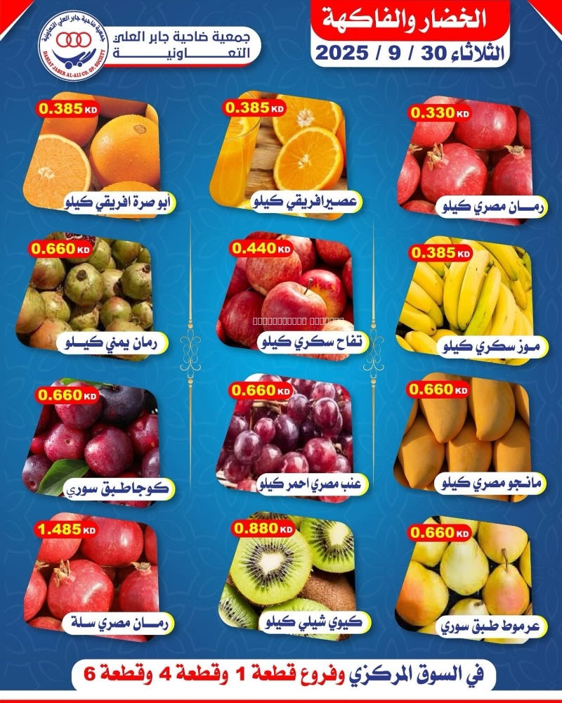 عروض جمعية جابر العلي التعاونية اليوم 30 سبتمبر 2025 الموافق 7 ربيع الاخر 1447 عروض الخضار و الفواكه