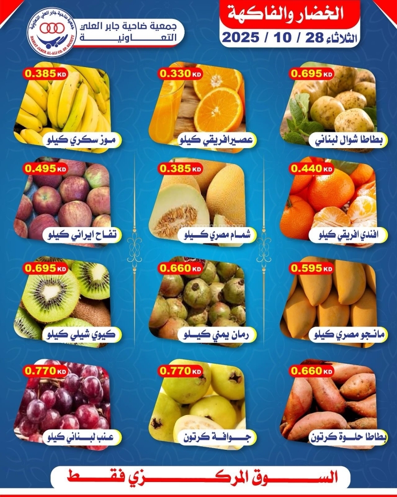 عروض جمعية جابر العلي التعاونية اليوم 28 أكتوبر 2025 الموافق 6 جمادى الاول 1447 عروض الخضار و الفواكه