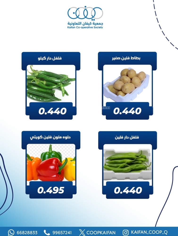 عروض جمعية كيفان التعاونية اليوم 11 نوفمبر 2025 الموافق 20 جمادى الاول 1447 عروض الخضار و الفواكه . تابعوا أحدث عروض السعودية المتوفرة في جميع المتاجر و الهايبرات بأسعار منافسة 11-11-2025 الموافق 20-5-1447 عروض جمعية كيفان التعاونية اليوم : تتضمن تخفيضات جمعية كيفان التعاونية خليط الكاكاو قليل الدسم المحلى نسكويك ٥٠٠ غرام . و ايضا كذلك نسكافيه ماي كاب ٣ في ١ اصبع ١٧,٥ غرام ٣٠ كيس . لا ننسى ايضا كذلك حليب مركز كامل الدسم وادي فاطمة ١٧٠ غرام شد ٣ . و يوجد هنا كذلك طحينة فاخرة الوردة ٥٠٠ غرام . كما و لدينا ايضا كذلك قشطة قيمر كي دي دي ١٢٥ مل شدة ٤ . و لا تنسوا ايضا مربى حلواني اخوان ٨٠٠ غرام . كذلك المزيد من العروض و المفاجات في كل أسبوع . عروض جمعية كيفان التعاونية لهذا الأسبوع: و مما تقدمه لكم أيضاً عروض اليوم من عروض زيت ذرة النقي أسواق التميمي ١,٥ لتر . و ايضا كذلك رقائق الفطور بالفواكه و العسل او الشوكولاتة و فنتس ٣٥٥ جرام او ٣٧٦ جرام . لا ننسى ايضا كذلك نصف دجاجة متبلة أصناف متنوعة . و يوجد هنا كذلك سلمون نرويجي كامل ٢ كيلو غرام او ٣ كيلو غرام . كما و لدينا ايضا أناناس فلبيني او كينيا بالحبة . و لا تنسوا ايضا كذلك توت بري المغرب او المكسيك ١٢٥ جرام . واليكم الصور الآتية على موقع عروض الكويت