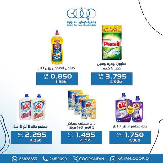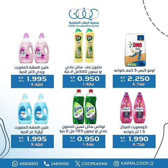 لا ننسى كذلك نجد بين الحسومات تخفيض على كلينور منعم ملابس ٢ لتر ٢ حبة بانواعه . و ايضا كذلك عرض سيم مدور خشن شعار الجمعية ١٦ حبة . لا ننسى ايضا كذلك اسفنج عادي شعار الجميعة ١٦ حبة . و يوجد هنا كذلك مسحوق غسيل ملابس ايزي كلين عالي الرغوة ١٠ بالكيلو جرام ازرق . كما و لدينا ايضا كذلك بسكويت لوتس محشي ١٥٠ غرام ٢ حبة . و لا تنسوا ايضا كذلك ويفر لواكر بندق ٤٥ غرام ٥ حبة .